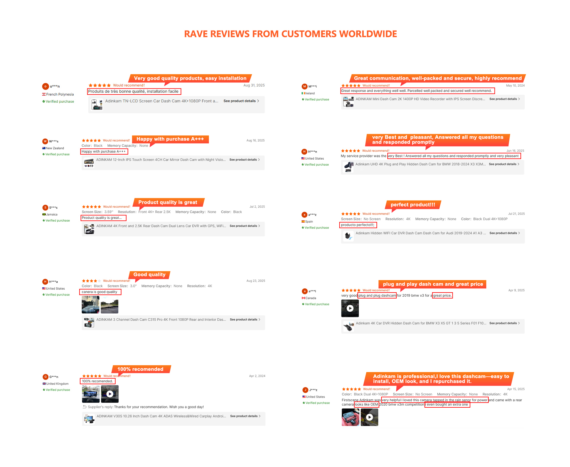 ADINKAM ADAS 4チャンネルバックミラーダッシュカム360度パノラマ4KフロントダッシュカムWifiアプリコントロールBSD LCA 1年保証